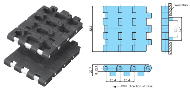 Plastic modular chain BTC8H-M type Major Specifications
