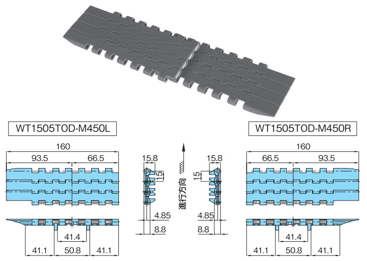 プラスチックモジュラーチェーンWT1505TOD-M形 主要諸元