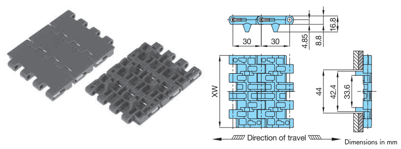 Major Specifications Plastic modular chain WT3005G-M Type