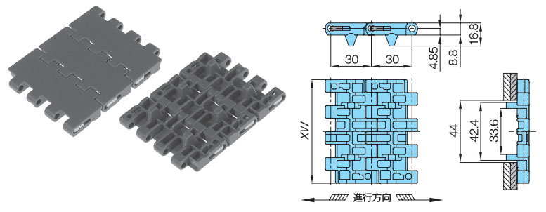 プラスチックモジュラーチェーンWT3005G-M形 主要諸元