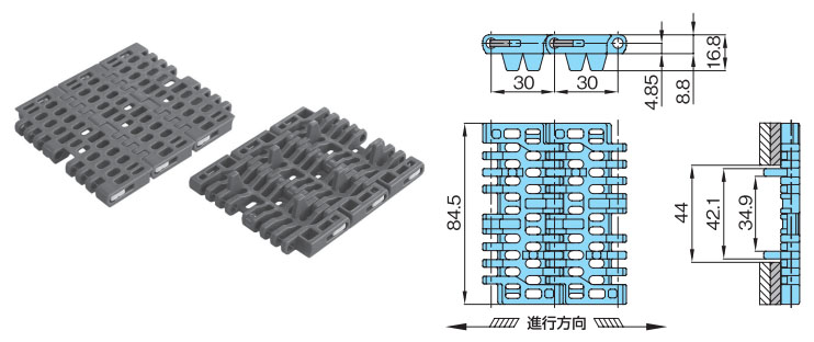 プラスチックモジュラーチェーンWT3086G-M形 主要諸元