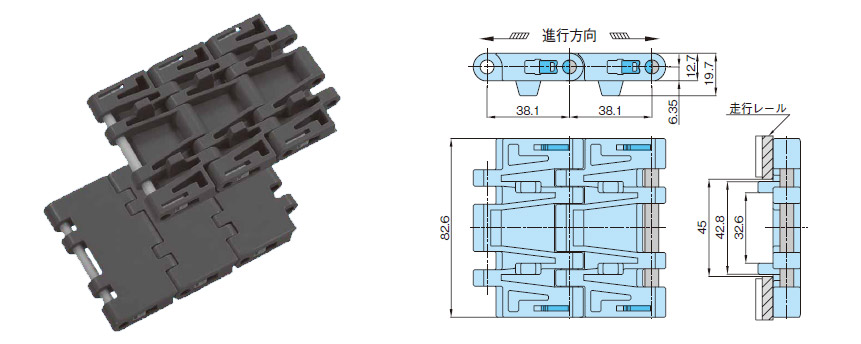 • ・チェーンピッチ=38.1mmで中形容器搬送に最適です。