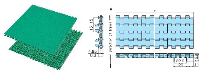 Chain pitch mm Open area rate % Backbend radius mm