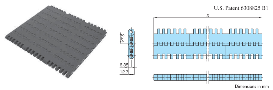 • ・幅広と幅狭のプラスチック製モジュールをレンガ状に組合せ、ワイドな搬送面を実現し大量搬送が可能です。