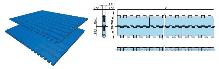 プラスチックモジュラーチェーンWT2515-W形 主要諸元