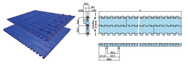 • ・幅85mmと170mmのモジュールリンクの組合せでチェーンを構成しています。