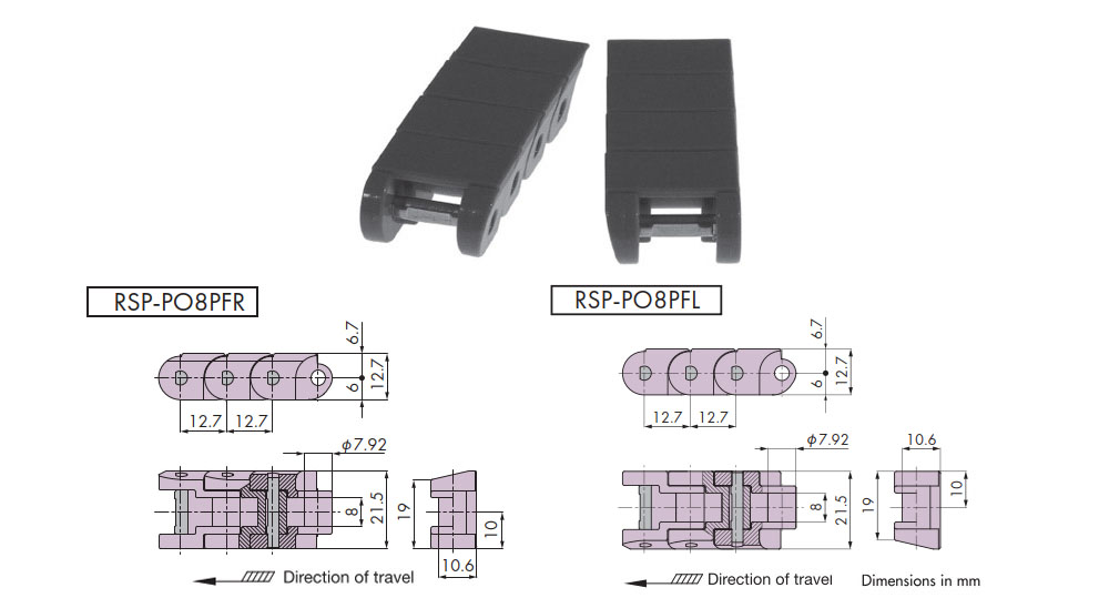 Plastic block chain RSP-PO8PF Type Major Specifications