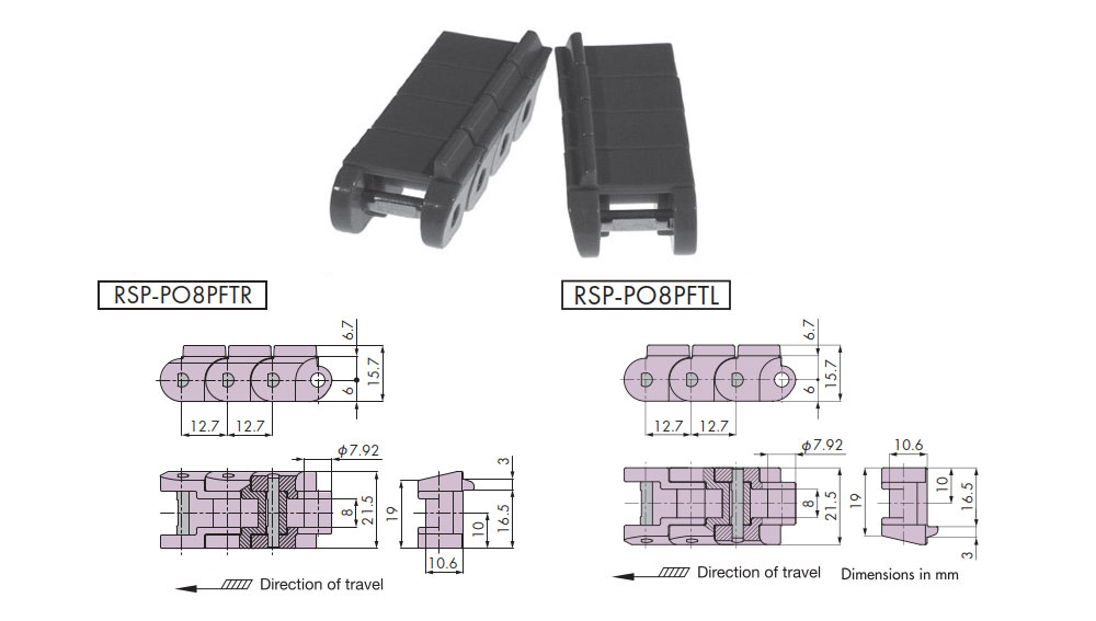 Plastic block chain RSP-PO8PFT Type Major Specifications