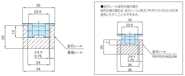 • Note 4: Stainless steel (cold rolled material) is recommended for wearstrip material. UHMW-PE (ultra-high molecular weight polyethylene) is not recommended as it is the same material.