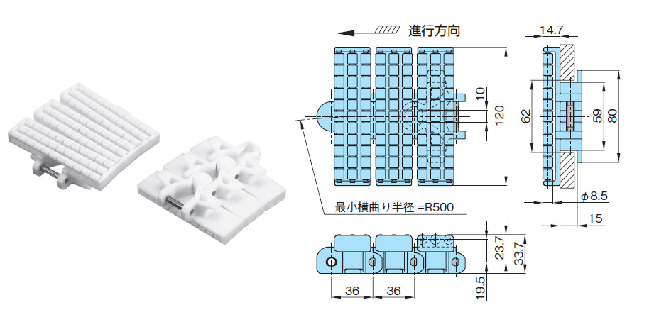 Plastic top Chain Curved Accumulation Chain TP-36UTW-LAP Type Major Specifications