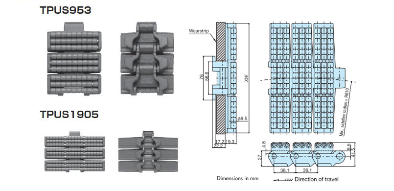 Plastic top Chain Curved Accumulation Chain TPUS-LBP Type Major Specifications