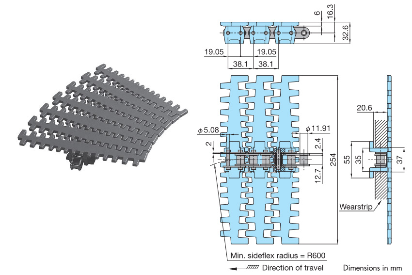 • - A curved conveyor chain with a large allowable tension and a wide top plate, making it effective for conveying large items.