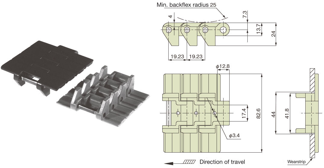 Chain pitch mm Backbend radius mm