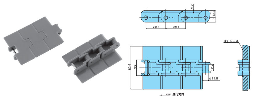 • ・バイピッチチェーンにプラスチック製プレートを設けた搬送用チェーンです。
