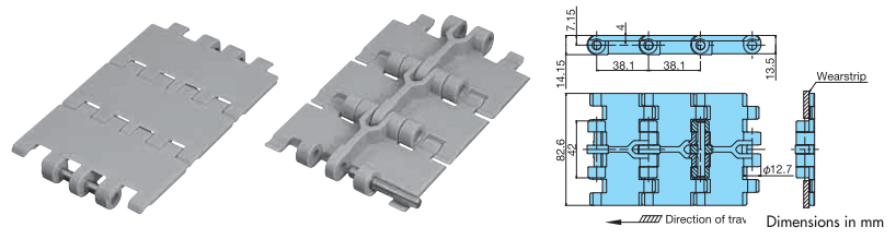 • ・くし歯状多ヒンジ構造により、トッププレートをラップさせており、搬送物の引掛りを防止します。ペットボトル等、不安定容器の搬送に最適です。