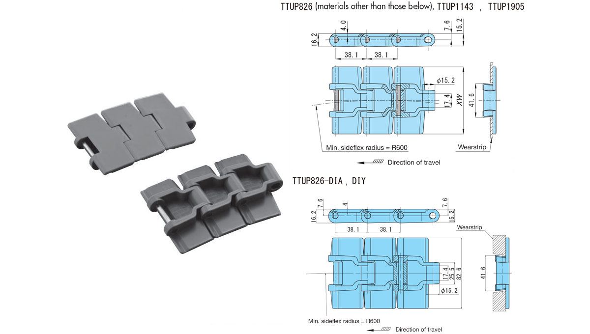 Major Specifications TTUP type Plastic top chain