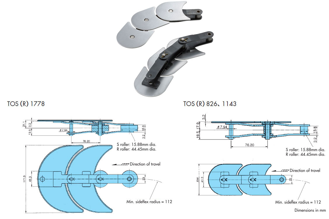 - - Horizontal conveyance chain. Ideal for horizontal conveyance in small spaces.
