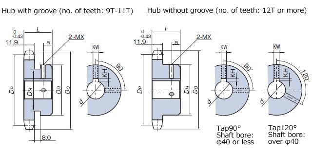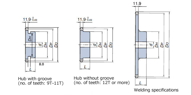 The above sprockets with machined specifications and 12 or more teeth can be used.