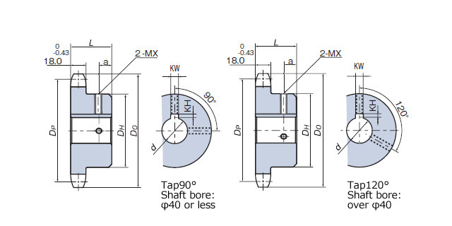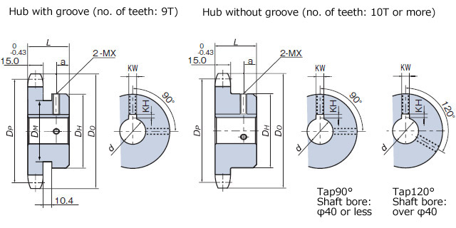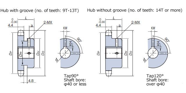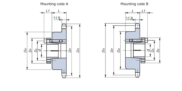 Double-row sprockets cannot be used. Use two single strand B-type sprockets with the tooth phases aligned.