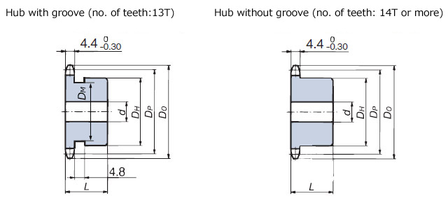 Hub groove Outer diameter DM mm |