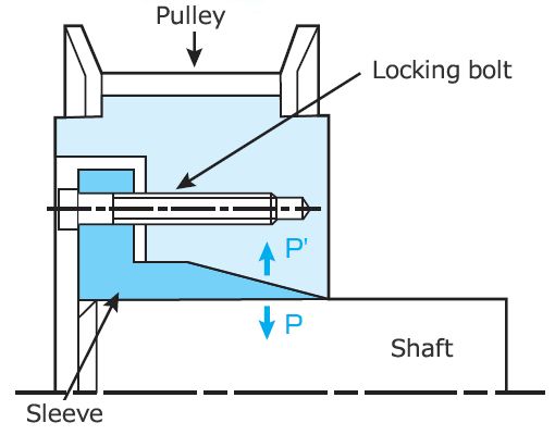 This P and P' force generates a frictional force that tightly fastens Belt Sprockets and shaft together.