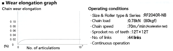Automated lines for processing, assembly, inspection, etc. have linear base machines (intermittent transfer conveyors) that ensure positioning accuracy. Chains are used as part of the transfer system, but with normal chains, sliding wear between the pins and bushings causes the chain to wear out and stretch, causing the stopping position to become distorted. This requires frequent position adjustment (maintenance).