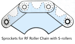 You will need to use a "Double pitch S roller dedicated sprocket," but if the number of teeth is 30 or more, you can use a standard RS sprocket. Please note that if you use an RS sprocket with 29 or fewer teeth, the chain pitch and the sprocket tooth pitch will be misaligned, preventing smooth meshing and resulting in poor operation.