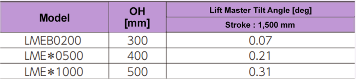 | A15 | The coasting distance and stopping accuracy when descending are as follows: LMEB0200H: Coasting distance: approx. 1.5 mm / Stopping accuracy: approx. ±0.5 mm |