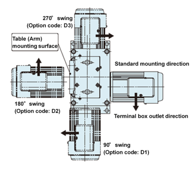 | A20 | The motor mounting direction can be changed as an option. [Option code: D1 to D3] ![]() |