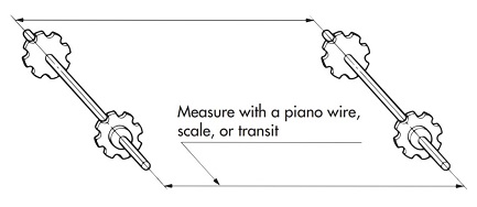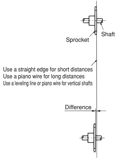 3. ③Adjust the misalignment between the pair of sprockets by adjusting the center distance (Fig. 3).