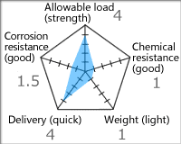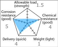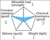 In addition to the general-purpose specification (PC), we also offer Super chemical resistance (PCSY) that uses special engineering plastics.